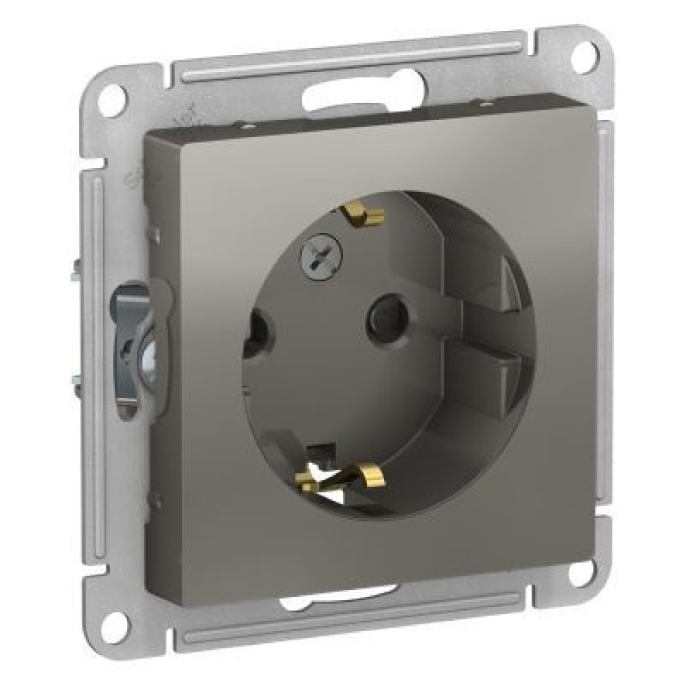 • ATN000945 Atlasdesign Розетка с заземлением со шторками, 16А, механизм, Сталь Schneider Electric