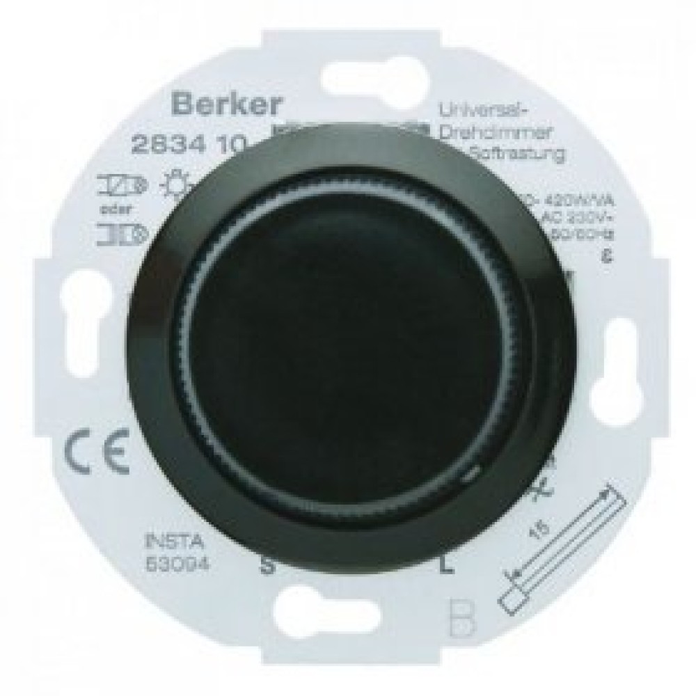 Технические характеристики 283411 Универсальный поворотный диммер с "Soft"-регулировкой, центральной панелью цвет: черный, с блеском серия 1930, Glasserie, Palazzo Berker