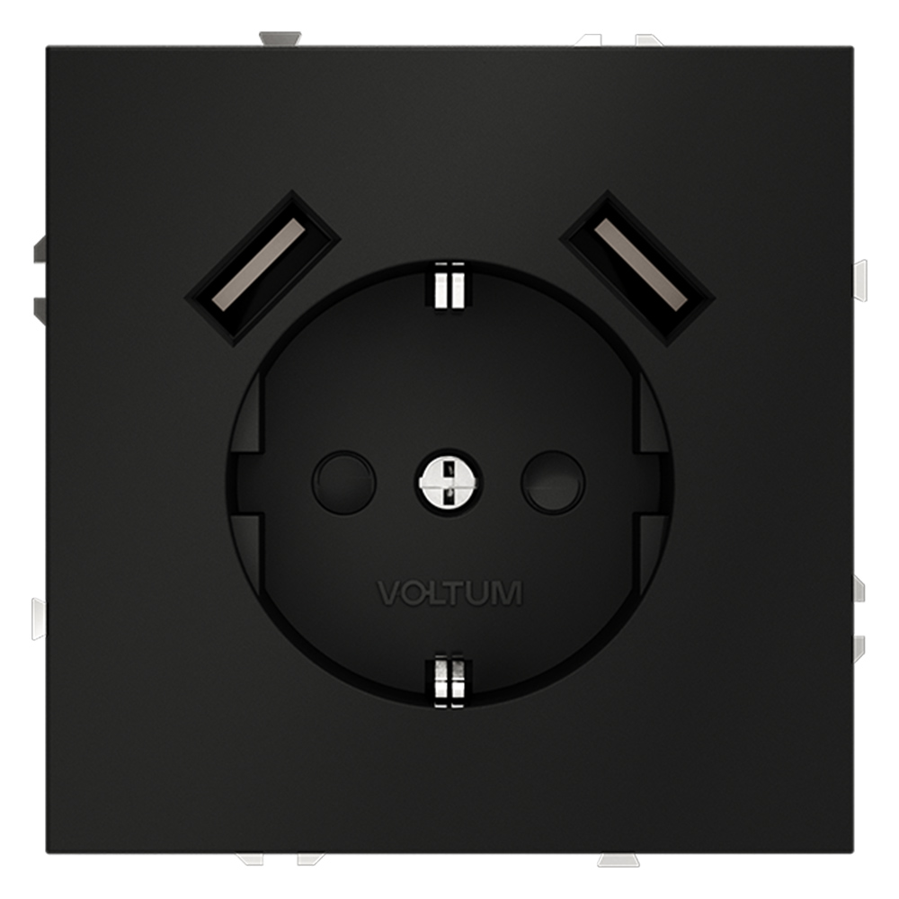 VLS040408 Розетка S70,с зарядкой USB A+A, 3.2А, USB type-A 5V, Электр. с USB, двойная, цвет - черный матовый