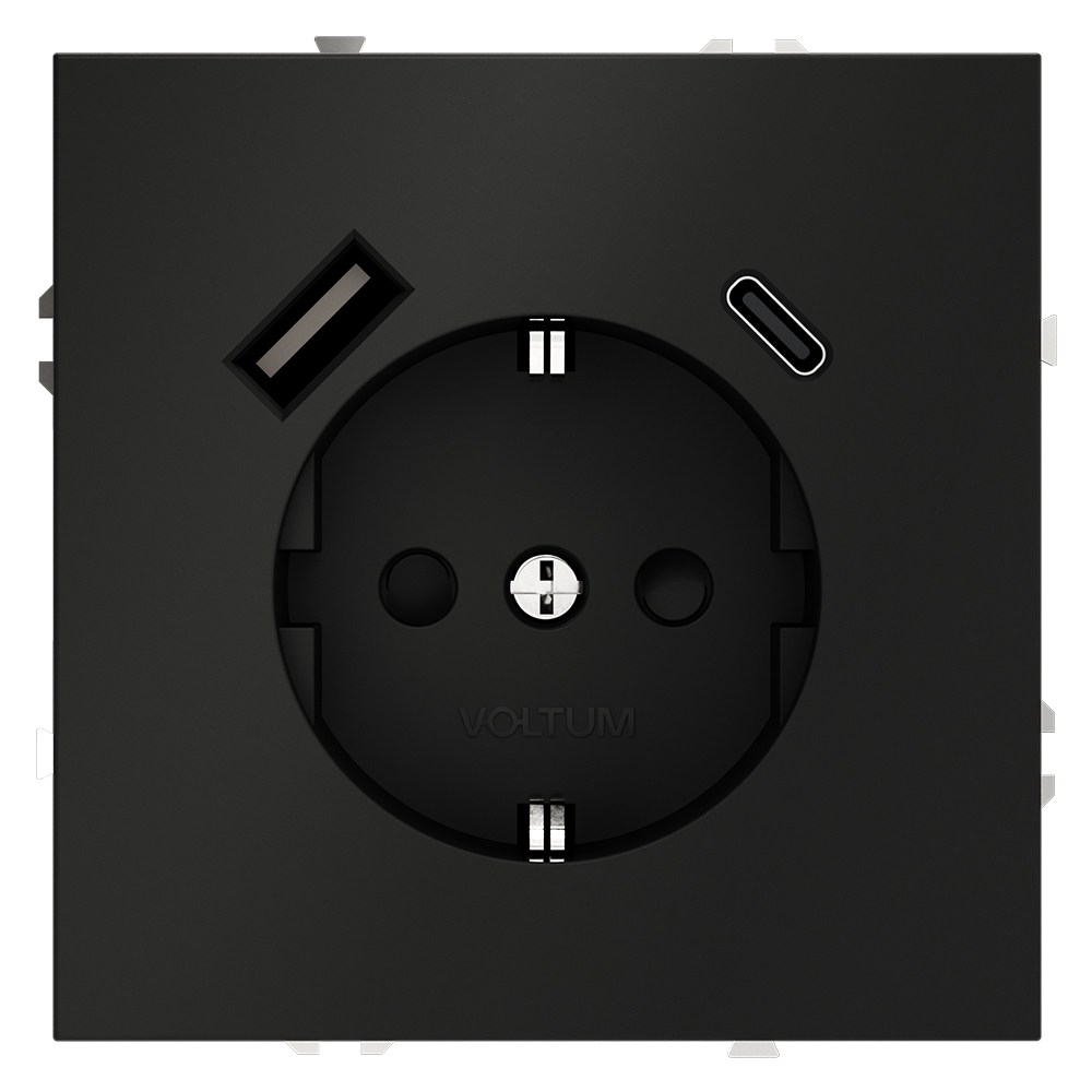 VLS040508 Розетка S70,с зарядкой USB A+C, 3.2А, USB type-C 5V, USB type-A 5V, Электр. с USB, двойная, цвет - черный матовый